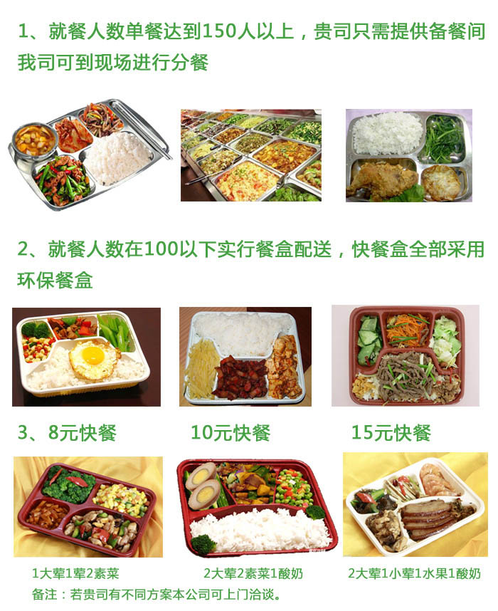 主營(yíng)業(yè)務(wù):企業(yè)食堂承包運(yùn)營(yíng)管理,現(xiàn)場(chǎng)配餐,打包快餐,蔬菜凈菜配送,副食品批發(fā)等